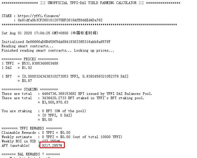 隨后開始吸引用戶加入流動性挖礦,由于趕上了流動性挖礦和YFII兩大熱點,YYFI的流動性資金池在7月31日早上時資金體量大概還在50-60萬美元左右,晚上直接達到了150萬美元。而YYFI的價格則是徘徊在200-400,而當時YYFI日收益率相當高,Pool2約在50%左右,Pool1池子粗略計算則在10-20%。高收益往往意味著高風險。