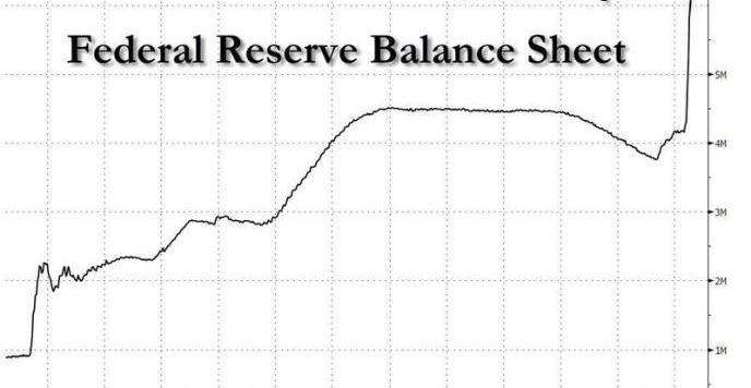 也就是說,在短短4個月內,美聯儲資產負債表就將會增加3.9萬億美金,約等于28萬億元,等于美國全年GDP的20%,相當于國內全年GDP的30%。據彭博社報道,2020年,美聯儲的資產負債表可能會漲到9到10萬億之巨。