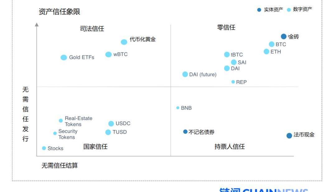 一個資產,如果既是去信任發行,又是去信任結算,那它就是一個去中心化系統的經濟帶寬的最佳形態。零信任資產是占據右上象限的那些資產。