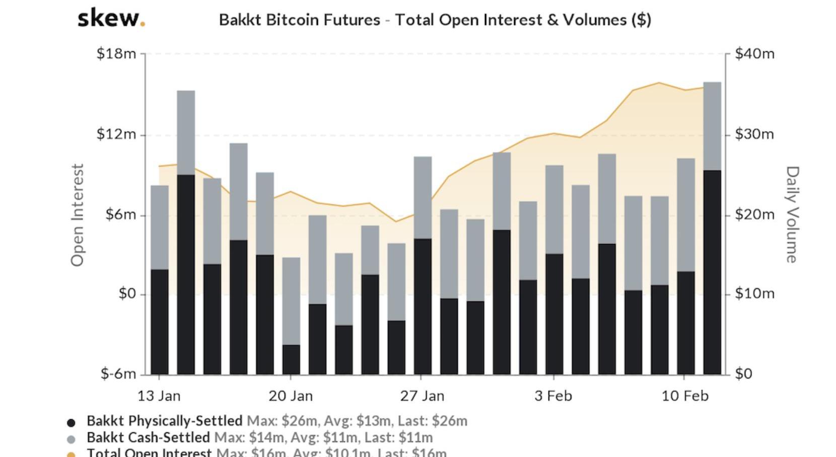 Bakkt于2019年9月推出了比特幣期貨產品,據Skew的數據顯示,該產品的交易量超過了3700萬美元,創下了2020年的業績記錄。