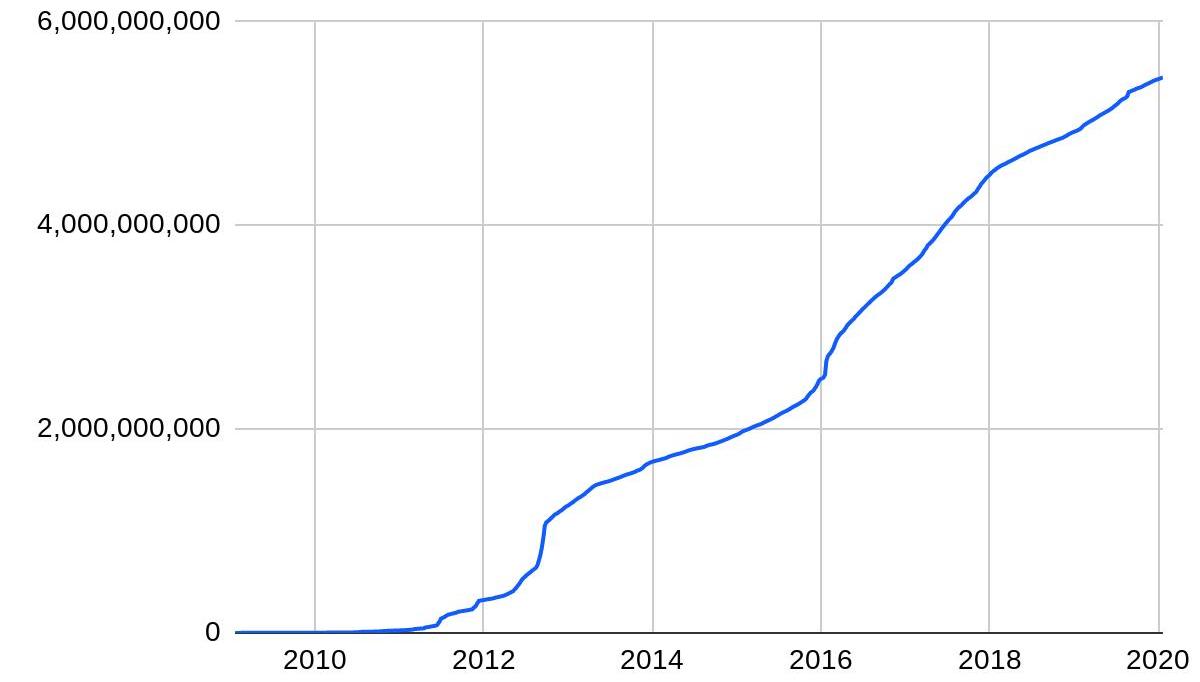 下面的圖5和圖6顯示了比特幣輸出的總幣值及其如何隨著時間的增長變化。約13億個輸出支出了約55億比特幣。根據支出發生時的比特幣現貨價格,這可能代表支出了超過12萬億美元。