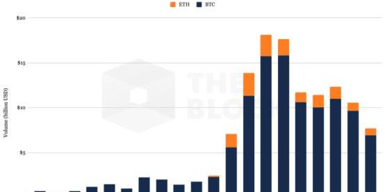 同樣的趨勢也可以在Deribit平臺上觀察到。6月份,BTC和ETH的總銷售額達到了181億美元。