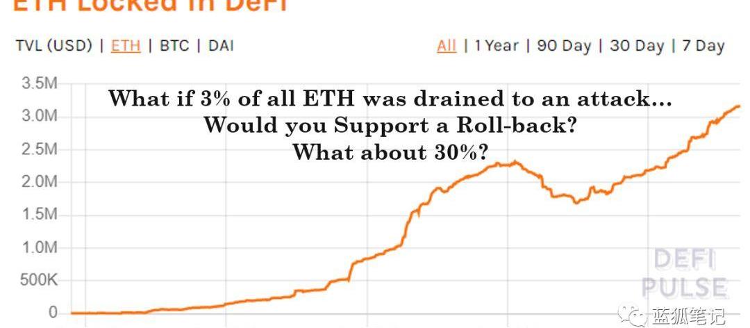 如果所有3%的ETH被黑客所轉移,回滾會不會擺在桌面上?如果不3%,而是30%呢?該攻擊者現在是PoS網絡上的最大驗證者。