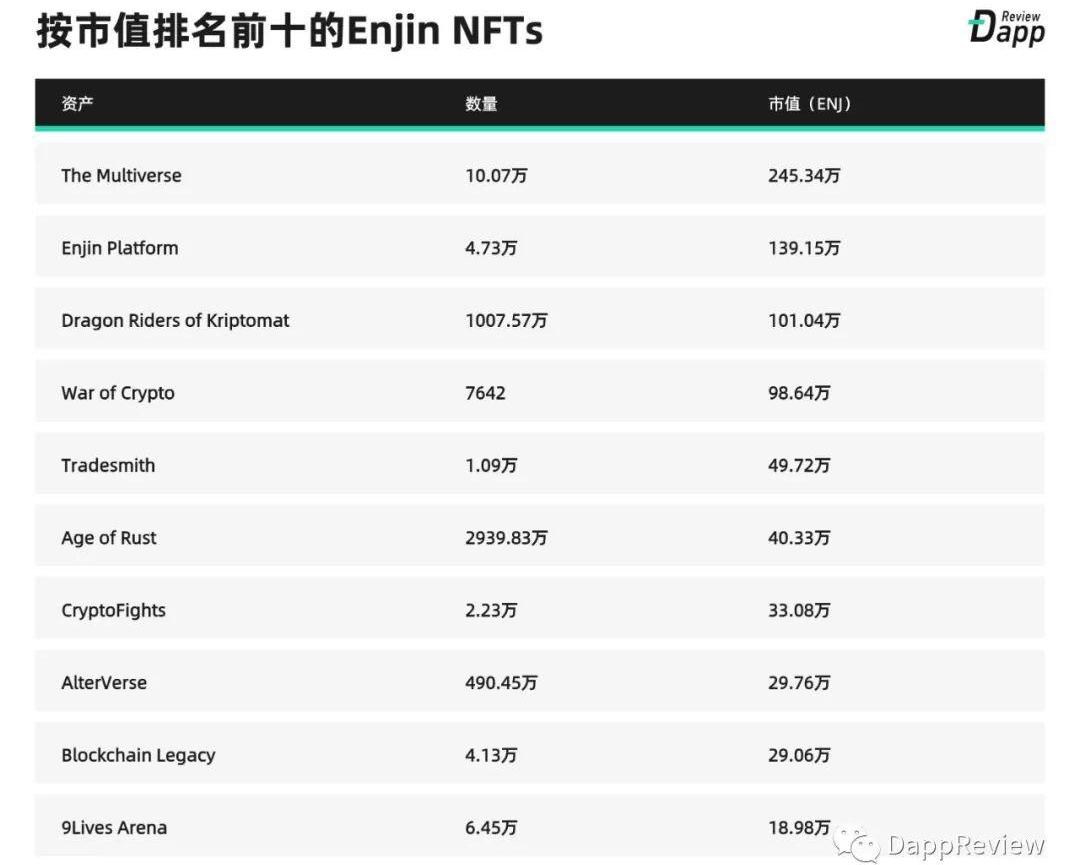 值得一提的是,去年12月,幣安發行了一系列基于ERC-1155的限量收藏NFT,一舉成為近期交易最活躍的資產。這些NFT的鎖倉ENJ代幣僅有0.5ENJ,平均交易價格卻在100-200美金之間,最高甚至達到20,000ENJ,可見幣安的品牌溢價和稀缺性給其NFT帶來了強有力的價格支撐。