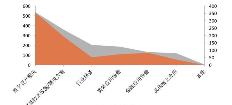 7大行業分類中有2類融資數量和金額出現背離:行業服務和金融應用場景。行業服務獲投數量多,但融資金額少;金融應用場景獲投數量少,但融資金額多,可能由于全球區塊鏈金融應用仍處于探索早期,但整個金融系統對安全和風險要求高,行業壁壘高。