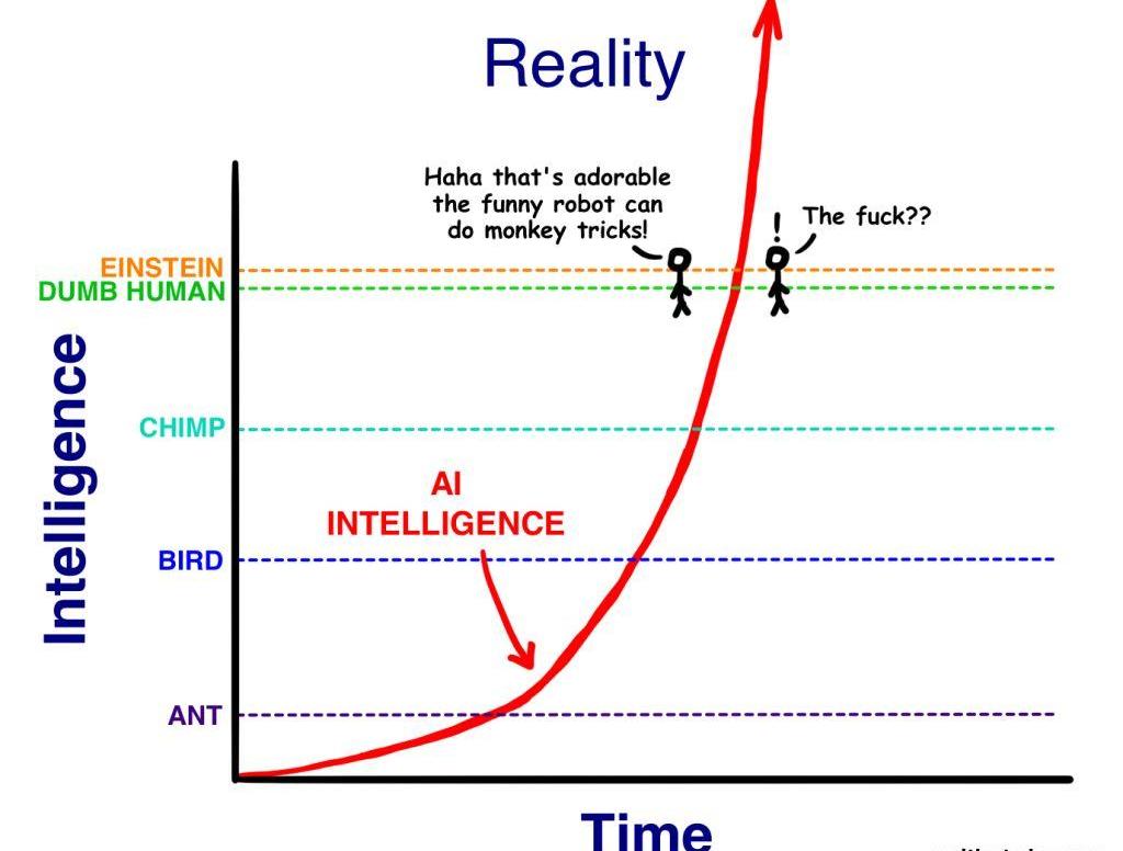 但由于遞歸自我改進策略,它會加速進化,在一定的節點出現智能爆炸,一旦超出人類認知范圍,留給人類的可能就只有WTF?
