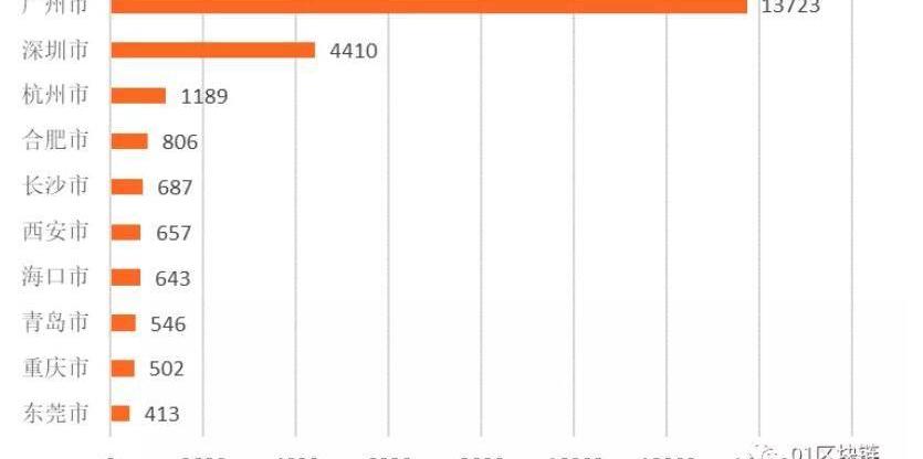 浙江省杭州市以1189家區塊鏈企業成為全國區塊鏈企業數量第三多的城市,也成為除廣東省廣州和深圳兩地外,唯一區塊鏈企業數量破千的地級市。