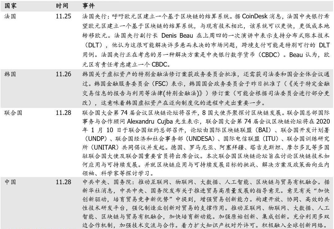 2.各國政府相關新聞:法國央行:呼吁歐元區建立一個基于區塊鏈的結算系統