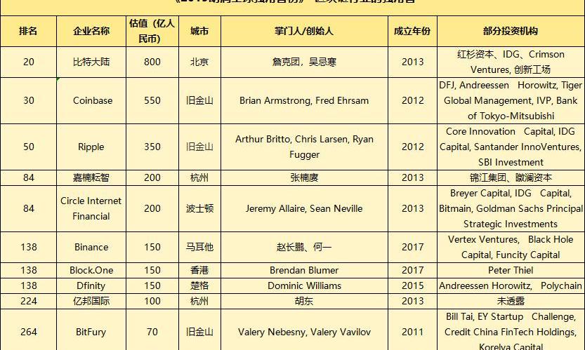 今天,胡潤首次發布了《2019胡潤全球獨角獸榜》。榜單顯示,金融科技在全球獨角獸企業市值中占比達到了22%,而區塊鏈產業也以2%的市值占比榜上有名。有11家區塊鏈企業上榜,分別是: