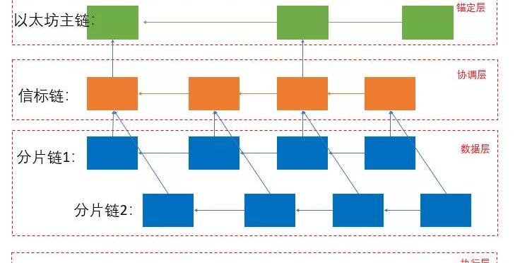 分片鏈之所以能解決性能問題,它相當于是通過多片技術處理交易等,提高了系統的效率和性能,下圖展示的是信標鏈和分片鏈的結構圖,其中信標鏈處于協調層,負責協調和管理工作,而分片鏈處于數據層,負責數據部分的工作。????????