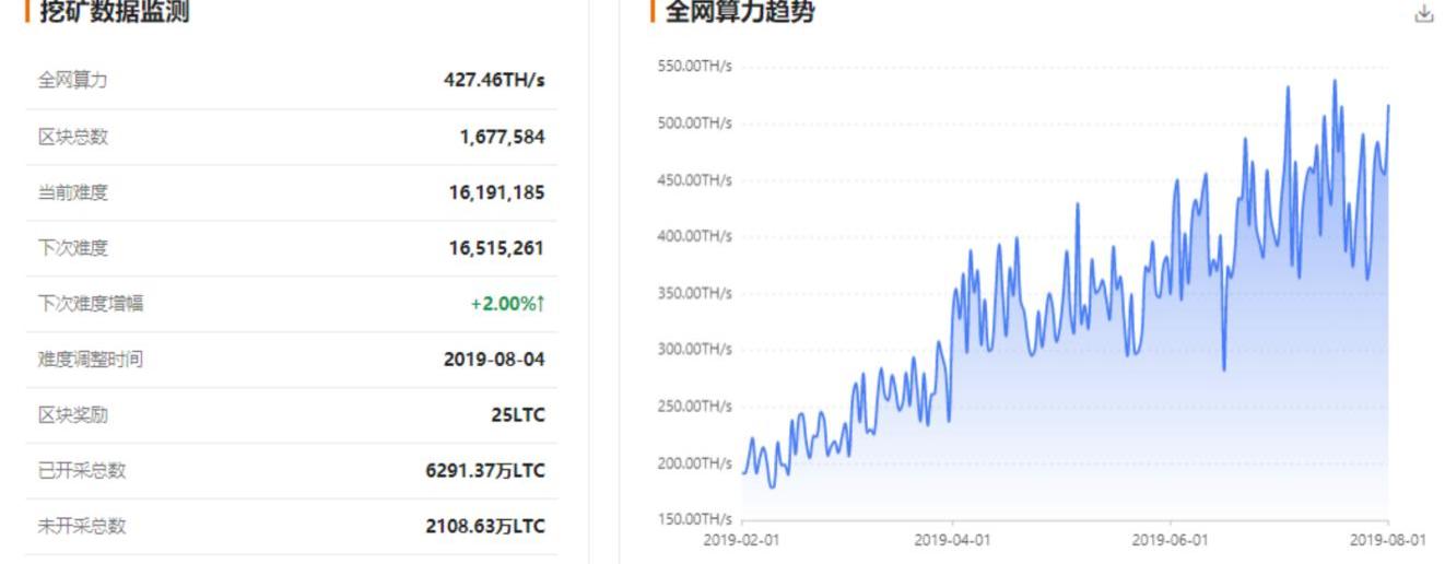 目前,LTC全網算力為427.46TH/s,較昨日略有較小,接近歷史高點,長期上升趨勢未改。昨日,LTC鏈上活躍地址數為7.80萬,相對前日略有減小,低于兩個月以來的均值。昨日LTC幣天銷毀數,較前日明顯增加,短時LTC聯動BTC。