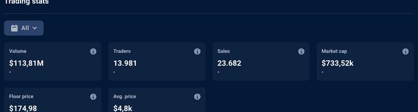 MAYC在過去兩個季度中擁有第二高的交易量,平均售價為22,495美元。該NFT的交易者平均交易5.72筆。