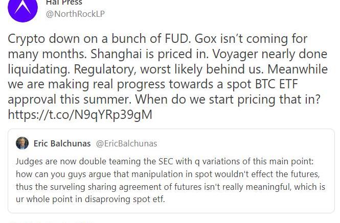 交易量從1月18日的高點繼續呈下降趨勢,shapella之后意外的巨大獎勵拋售壓力可能會破壞撤資是凈利好的整個敘事,導致可能考慮過出價的交易員感到擔憂,并創造一個自我實現的下行螺旋預言。