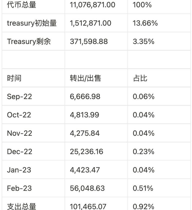 SSVTreasury在2021年9月一共轉入大約151萬枚SSV,占代幣總量的13.66%。過去1年半的時間里Treasury一共轉出/售出114.1萬枚,剩余37.1萬枚。過去半年時間里雖然僅轉出/售出10.1萬枚。