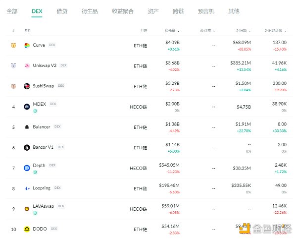 過去24小時去中心化交易所的交易量數據來源:Debank