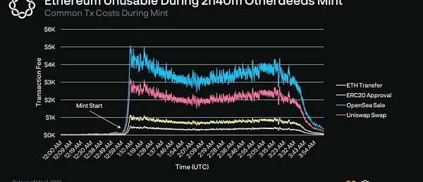 在Otherdeeds鑄幣期間,ETH轉賬超過500美元/tx