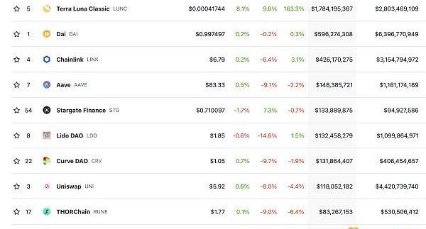 DeFi項目鎖定資產前十排名及鎖倉量數據來源:defillama