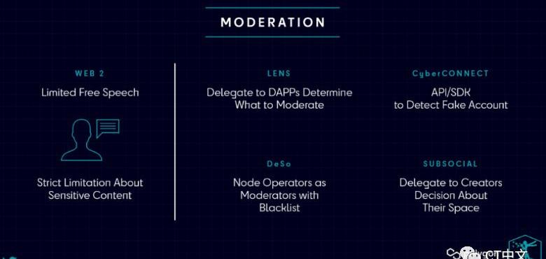 在討論審核和審查制度時,這種擁有自己的關系網的想法變得更加重要。唐納德·特朗普被禁止使用推特,然后去做了他自己的社交媒體應用:TruthSocial。隨著這一轉變,他失去了現有的粉絲。對于那些不屬于人物的個人來說,情況仍然要糟糕得多,他們有可能因為社交媒體禁令而失去生計。彼此競爭的各個DeSoc應用正在嘗試各種審核技術,以保持在法律范圍內,同時也避免web2審核的過度。