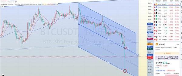 ETH從4小時圖看,行情暴跌測試通道下沿支撐,雖然獲得了一定的支撐,但是想要直接轉勢再沖上去難度比較大。反而可以利用現在的探底反彈的機會,找高位做空。圖中反彈阻力位置可以考慮做空。