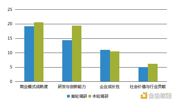 企業成長性評分是本輪調研中唯一低于首輪調研數據的一級指標,整體平均得分從 11.0 稍降至 10.5。產業整體的成長性未能實現進步的原因主要受到以下三類因素的制約:
